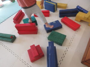 進んだら、置いてあるボールを1つ持って、同じ色のコースを歩いて戻ってね☺