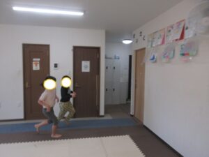 午前でさようならするお友達を見送ったらお昼を食べて午後の活動までゆっくり・・・