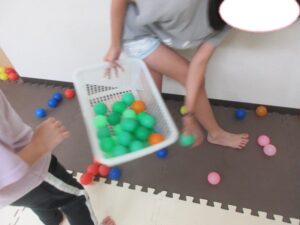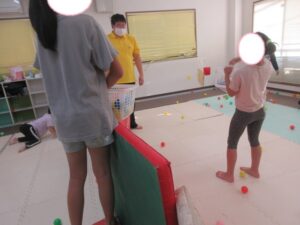 終わった後に先生の指定した色を沢山相手陣地に投げたチームの勝ちです★