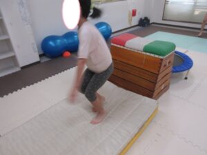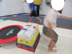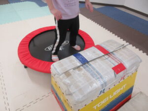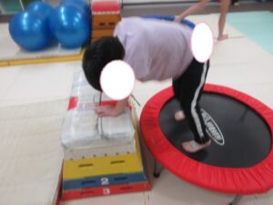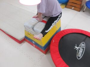 膝をうまく使ってトランポリンで上下に跳ねる練習を頑張りました👏✨