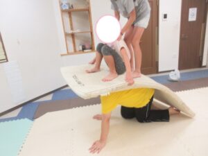 グラグラの足場を進んで行こう!みんなが上手に歩けるようになると先生からの妨害が!!