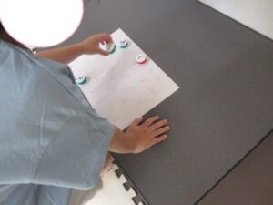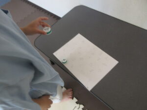 机の上の紙に書いてある同じ平仮名の上にキャップを乗せて戻ろう!