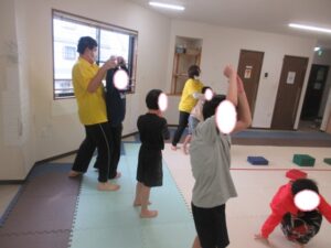 気に入った動きをしばらく楽しむお友達などそれぞれ出来ることで体を動かしました!