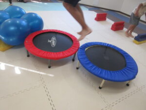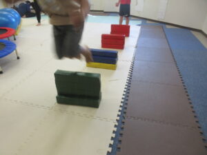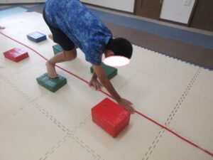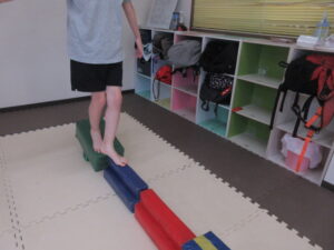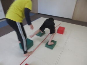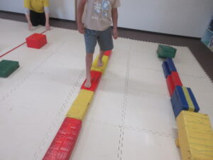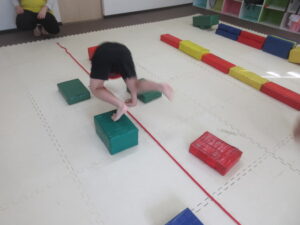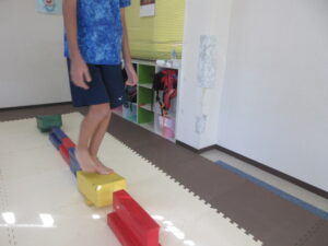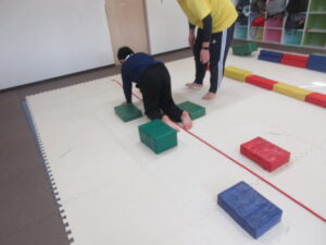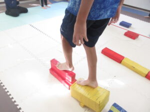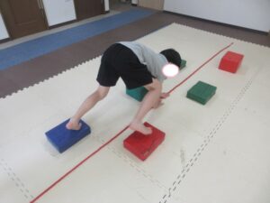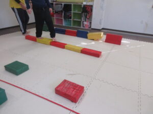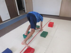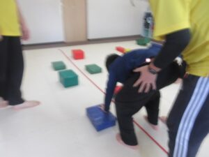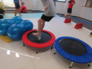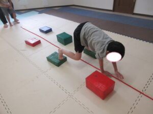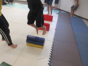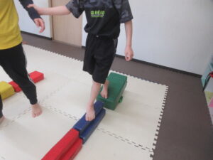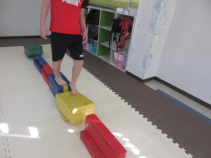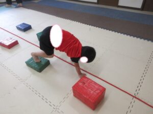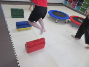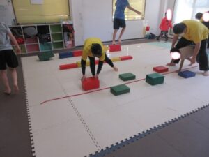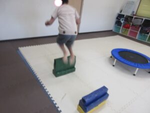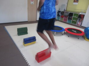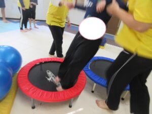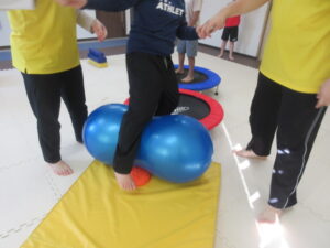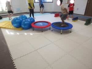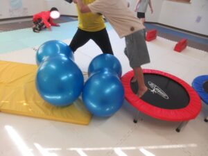 平均台を飛び越えたらトランポリンで勢いをつけて、ボールを飛び越える大ジャーーーンプ!