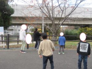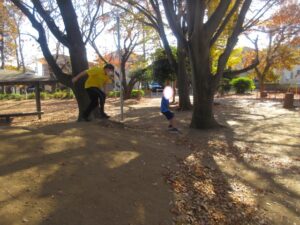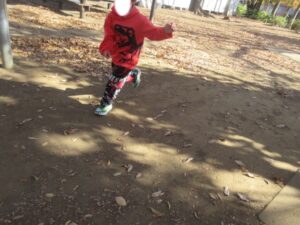 公園までは車に気を付けながらジョギングして、公園に入ったら鬼ごっこ開始!