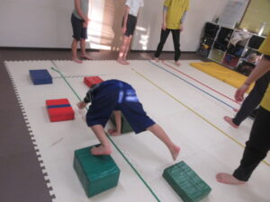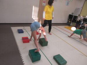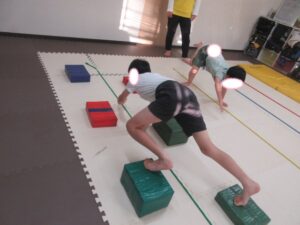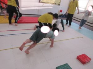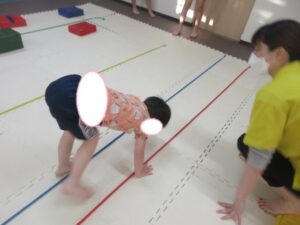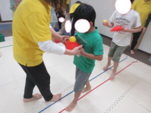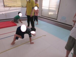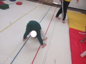 帰り道は片足クマさん!どちらも難しい動きですが、何度も挑戦してどんどん上達していました♪