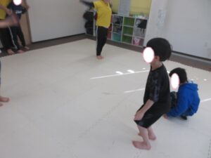 午前中最後の活動は、『歩く 止まる ダイブ~!』