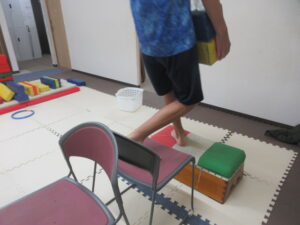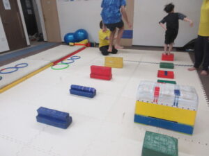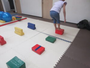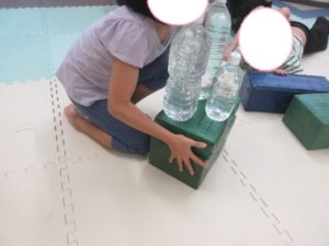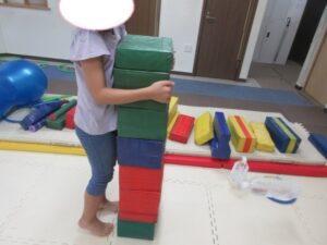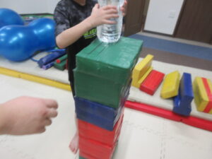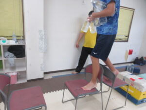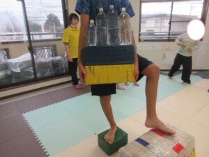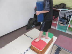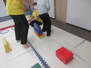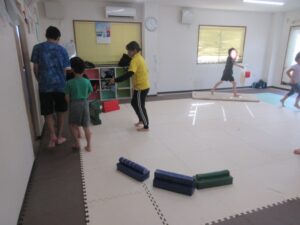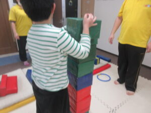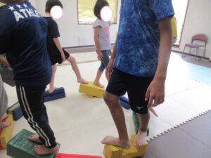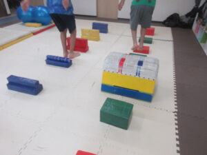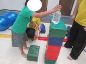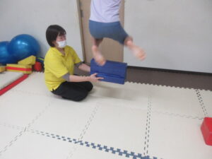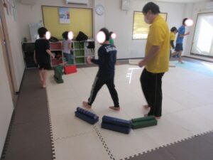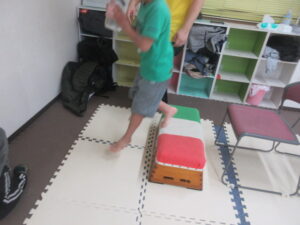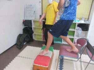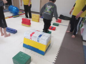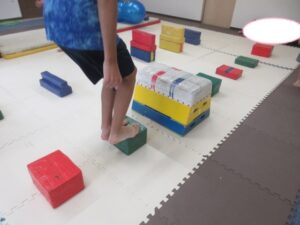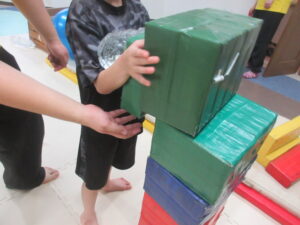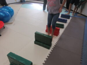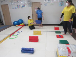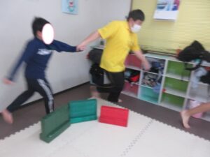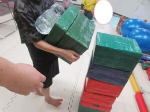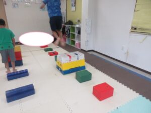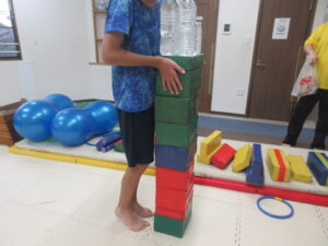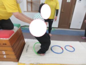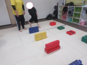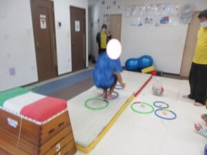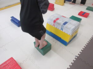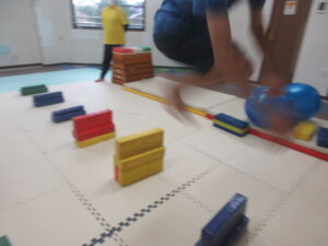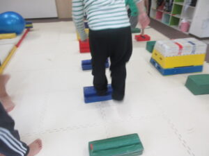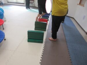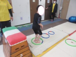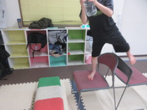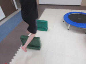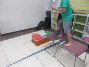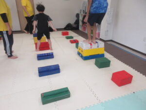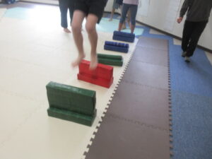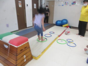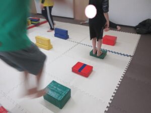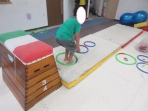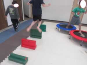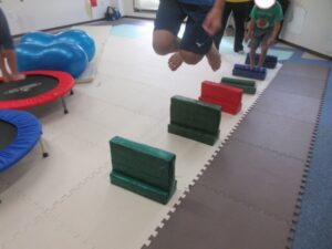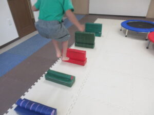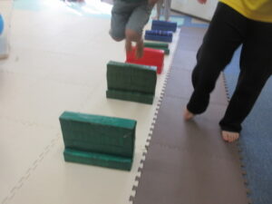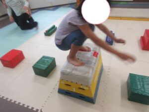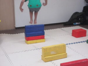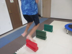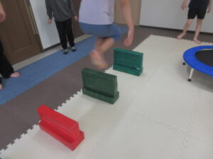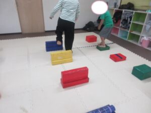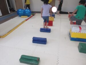 ジャンプが得意なお友達は赤い平均台・緑の平均台だけの島ジャンプにチャレンジをしたり