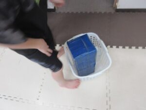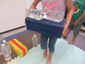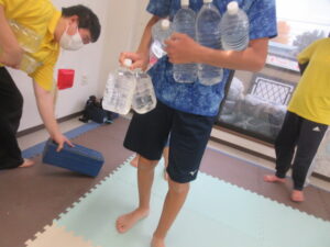 重いものを運びながら歩くのはいつもと違い手が使えず
