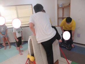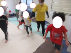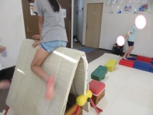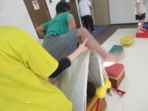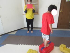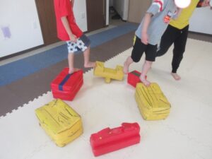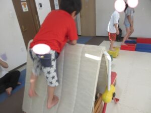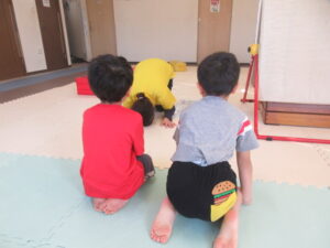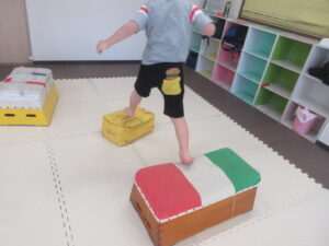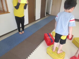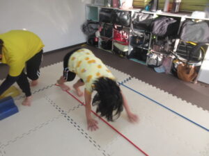 山登り→バランス歩き→クマの順で体を動かすよ✨