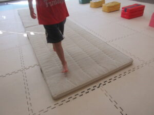 先生が太鼓をポンポン鳴らしている時は平均台の上を歩いて