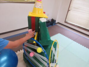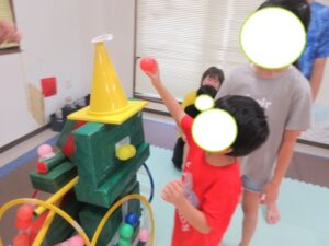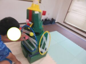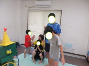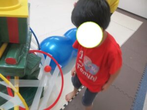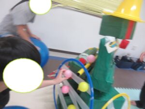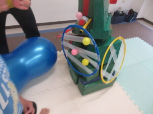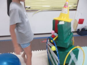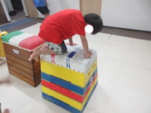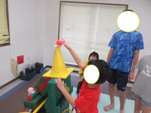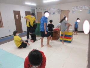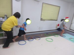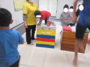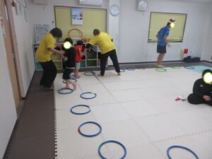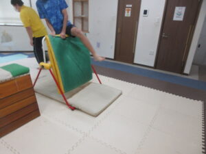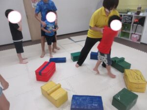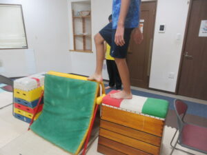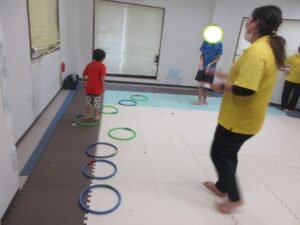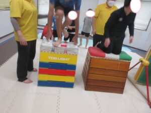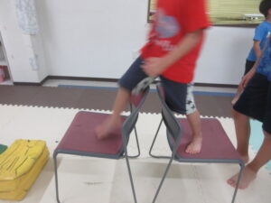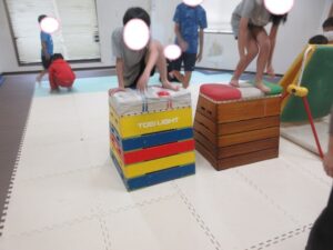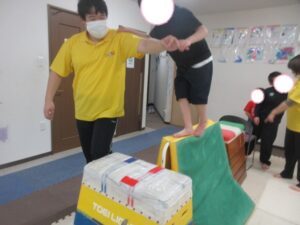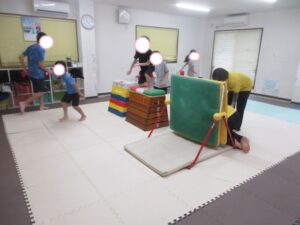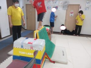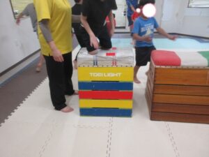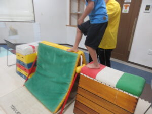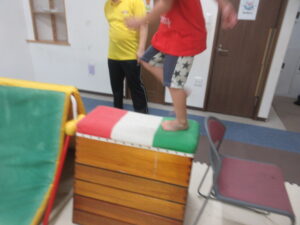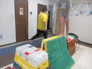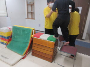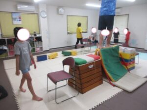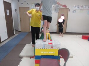 トランプをしたり、平均台を並べたりと自由時間を過ごし