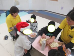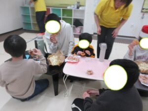 クリスマスにちなんだ遊びをして、最後はプチパーティーです😊