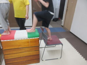 先生と一緒に進んだり、1人で進むには立つのが怖いお友達は