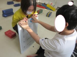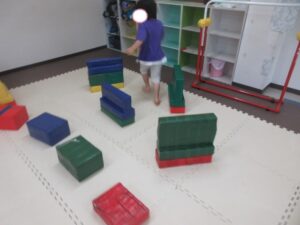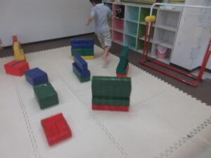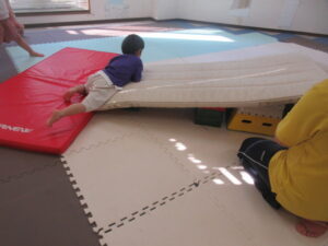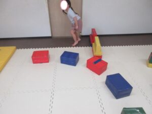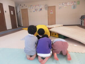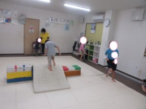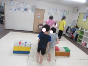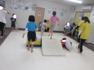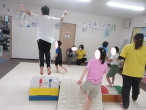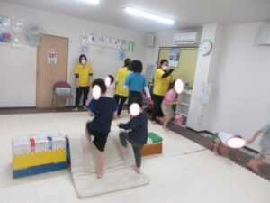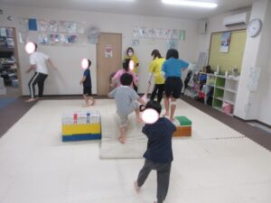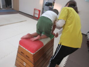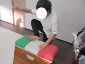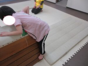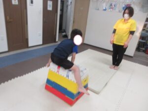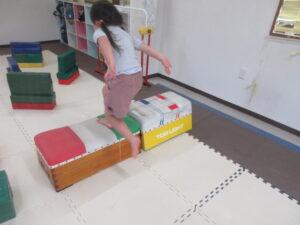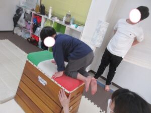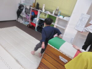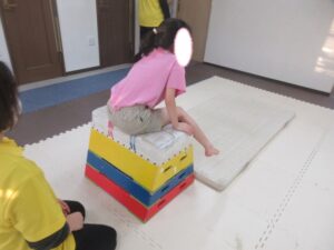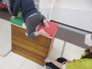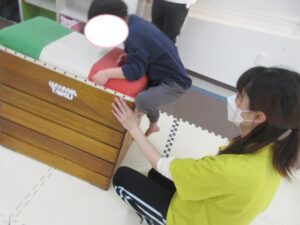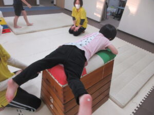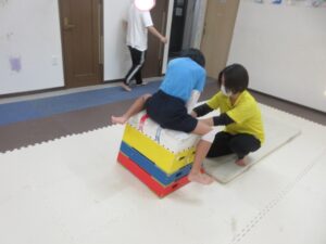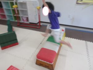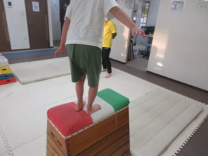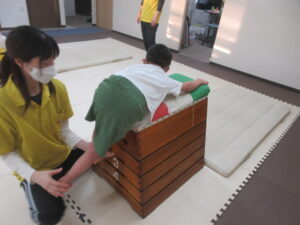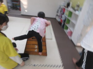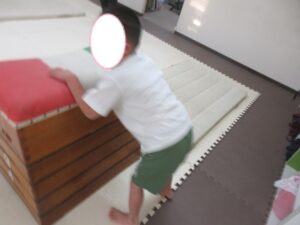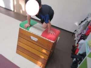 ジャンプが得意なお友達は跳び箱の跳び方を先生と確認しながら頑張りました(*^-^*)