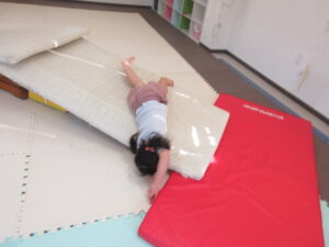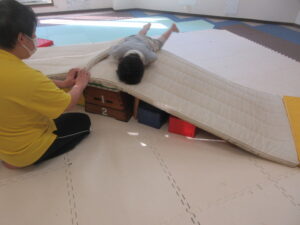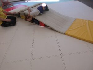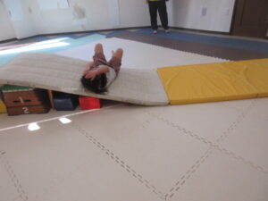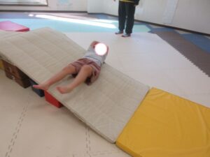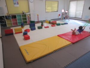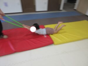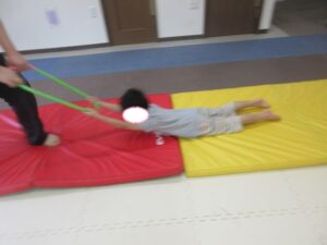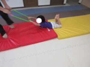 最後は、先生の待っている所まで行き、フープをギュッと握ったら、先生が引っ張るよ(´艸`*)