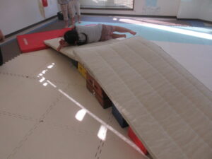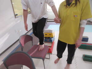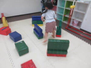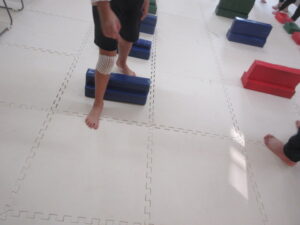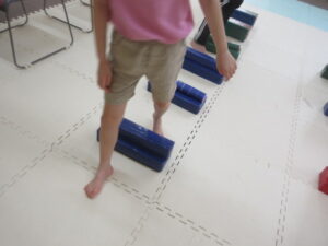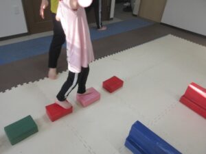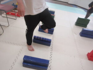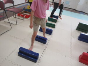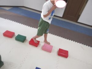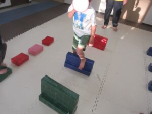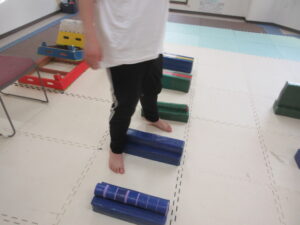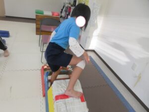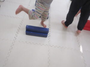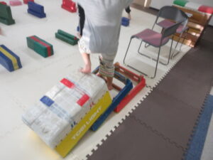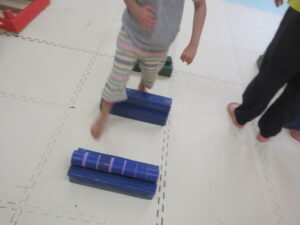 こっちのコースのお友達は小さな平均台に足を乗せて自分の力で進もう!