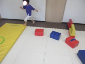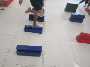 跳び箱を越えて、平均台をジグザグに超えて、、、