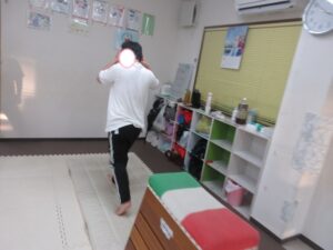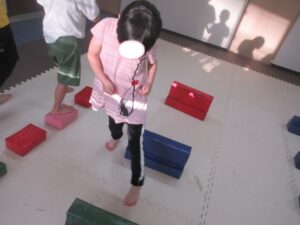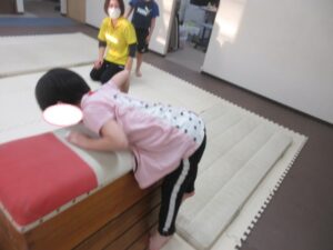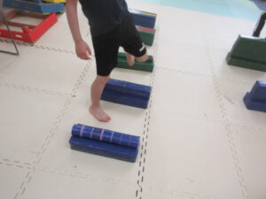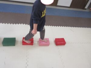 帰りは平均台を後ろ歩きで跨ぎながら戻ろうね♪
