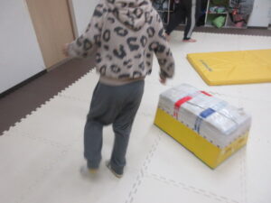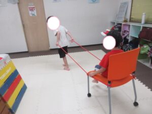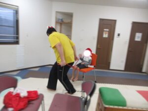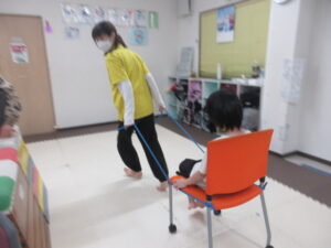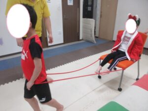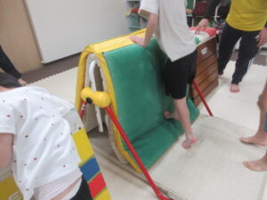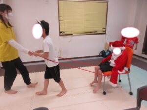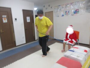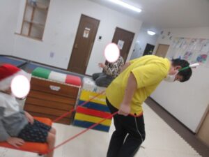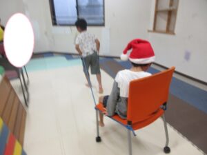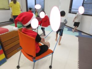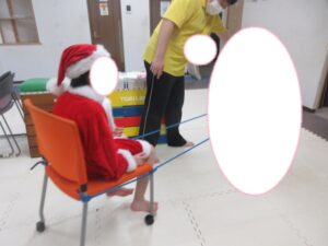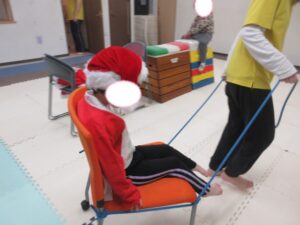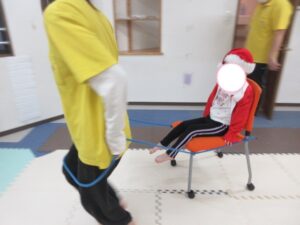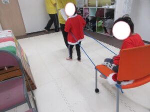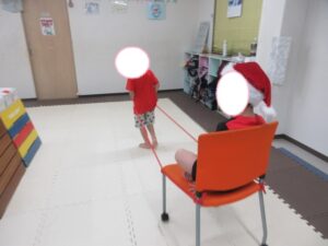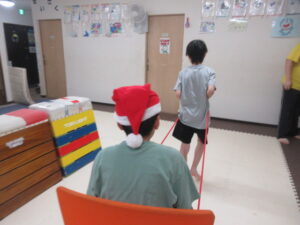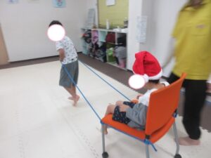 トナカイ役のお友達はサンタさんが乗っているイスを運びます!