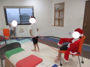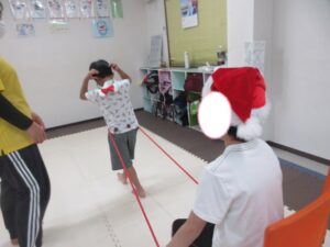 音楽が止まったら今日はマットで寝転がってサンタさんを待つ練習😊✨
