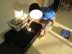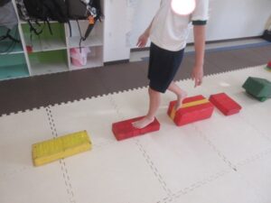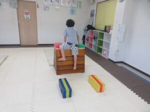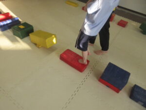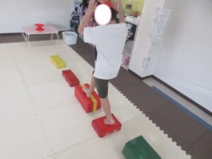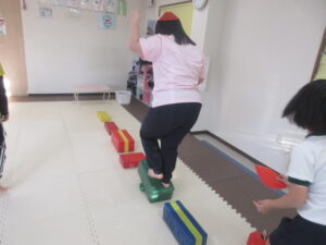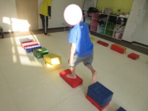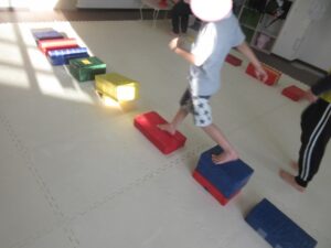 こちらのコースはバランス歩きをしたら積み木を重ねて