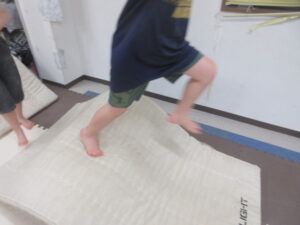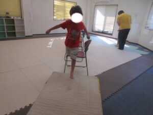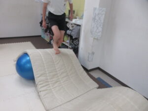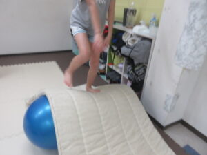 バランスボールとマットの上を歩いて戻ろう(^O^)/