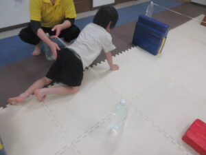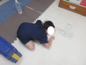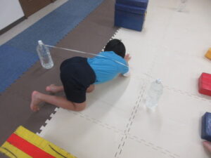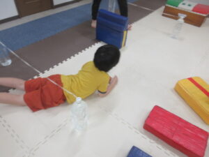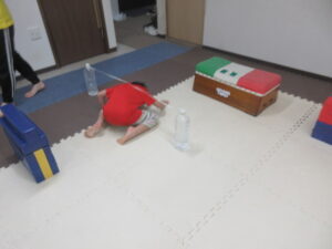 こちらのコースのお友達は、平均台をグージャンプ→ゴムは潜るをしながら進み、