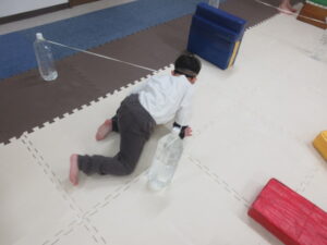 こちらのコースのお友達は、ボールを1つ持って、カーブのあるコースを落ちない様に
