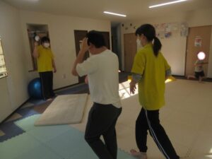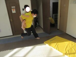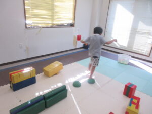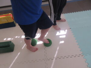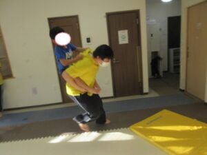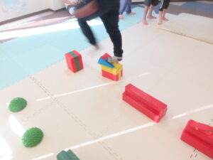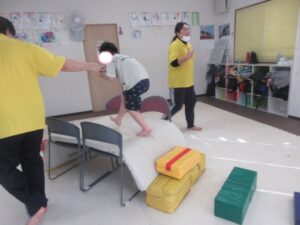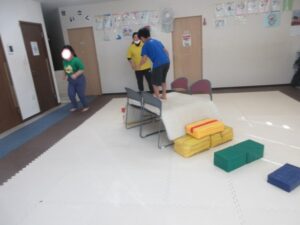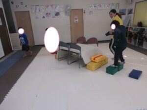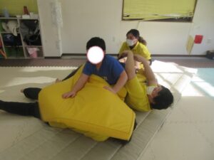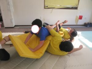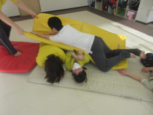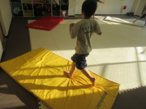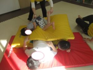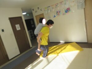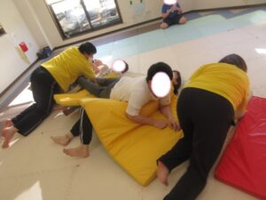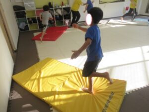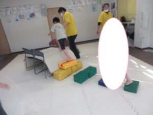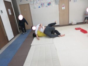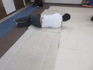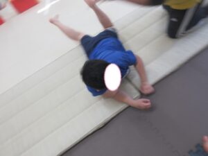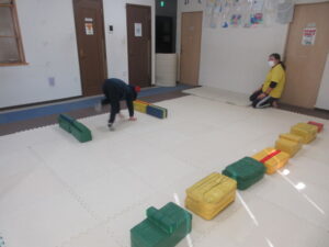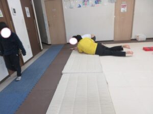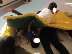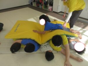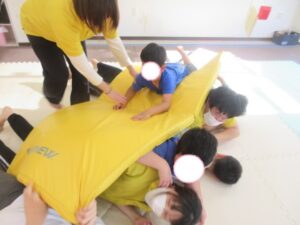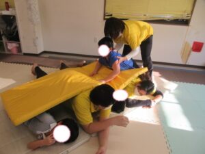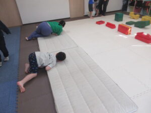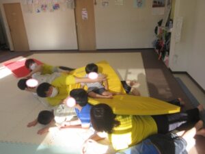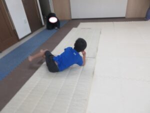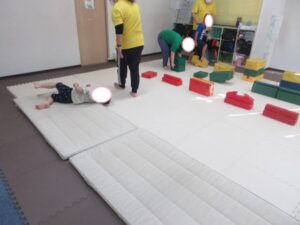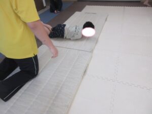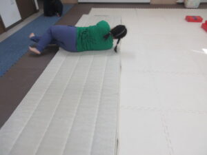 マットの上をお芋になってコロコロしよう!まっすぐ進めるかな?