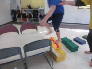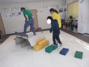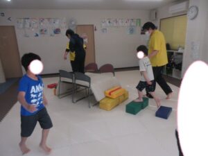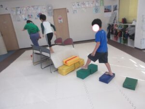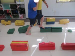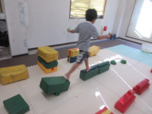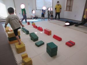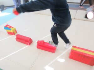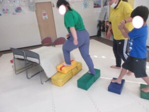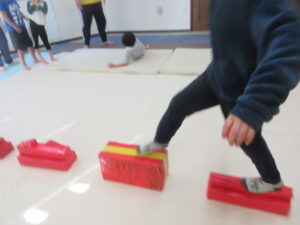 平均台やマットでできた階段をダッシュで走り抜けよう!