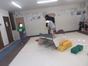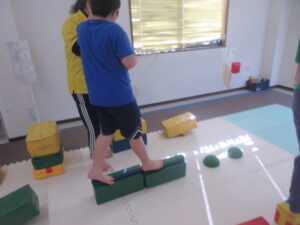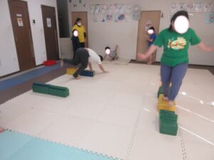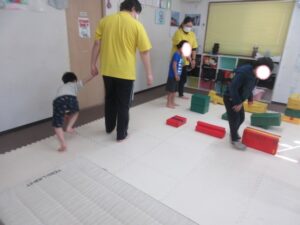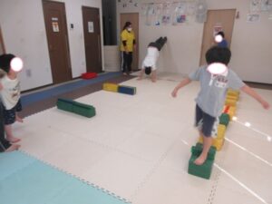 クマさんに変身!お尻を浮かせてノシノシ進もう!平均台も上手く跨いでね(*^^*)
