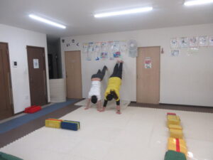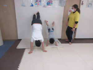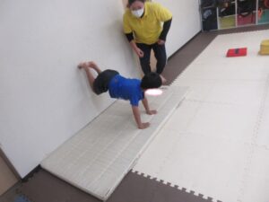 マットに来たら★壁倒立★足が上がったら5秒数えよう♬