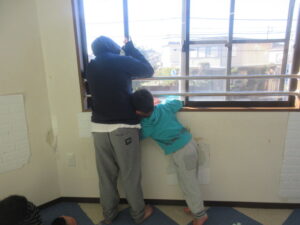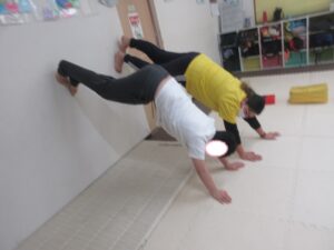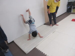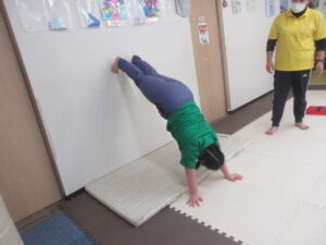 二つ目の活動は、『クマ 壁倒立』