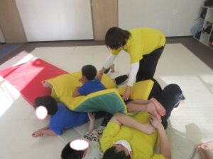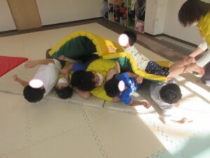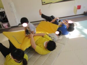 小さなお友達から、先生よりも大きなお友達まで絨毯に乗って楽しく取り組めました(*^^*)