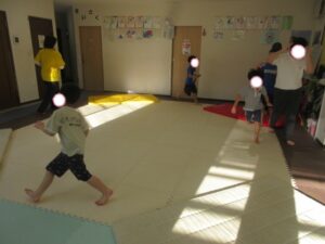 タンバリンの音がなってる時は教室を大きく走るよ!!
