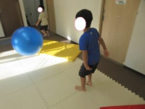音が止まったら、大きなボールが転がってきた><