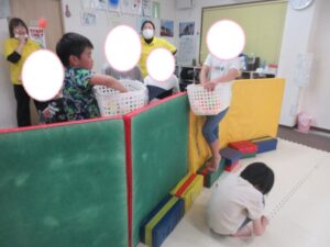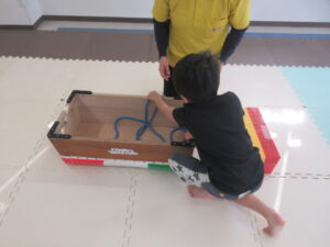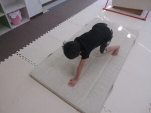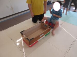 自分の所まで来たら、ロープを跳び箱に入れて今度は押して反対側まで進もう(*^^*)