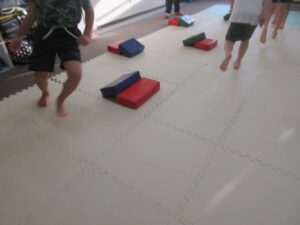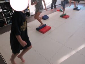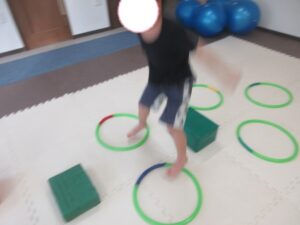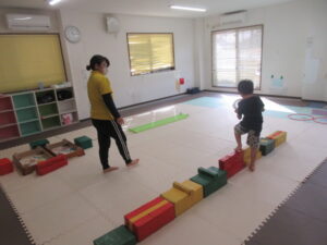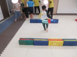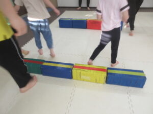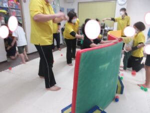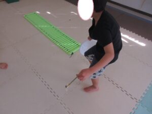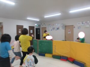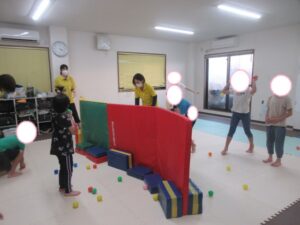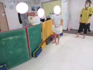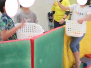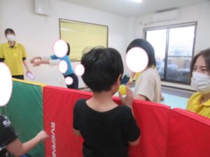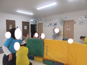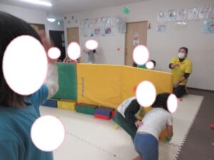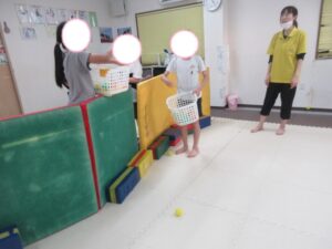 ボールを投げるのが得意なお友達は遠いマットから投げよう✊