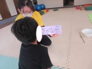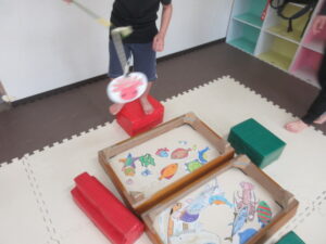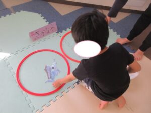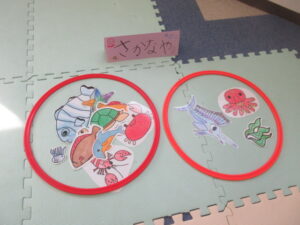 ゴールに、【さかなや】と書いてあるので、お店が出来る様に並べてね🐟
