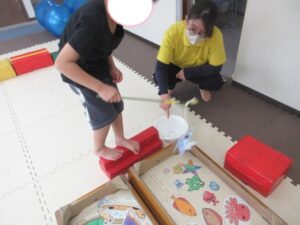 先生が、「クラゲ」「オレンジ色の魚」など言うから、狙って釣ろうね!!
