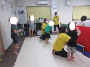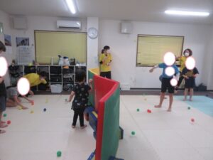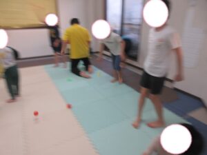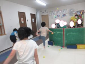 ボールを相手の陣地にたくさん投げたチームの勝ちです😊