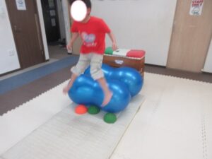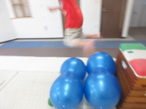 大ジャンプは、どんどん距離が遠くなっても、しっかりバランスボールを飛び越えて