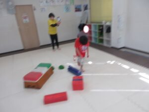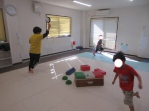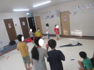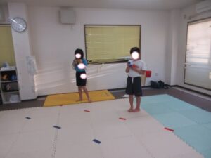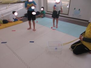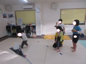 お友達は、青いテープの所から投げよう(*^^*)
