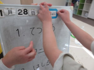 日付に使われている数字や曜日、お天気をしっかり確認しました😊