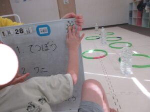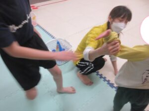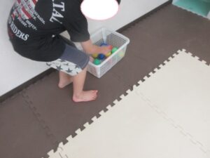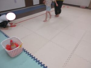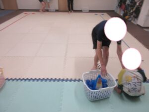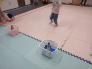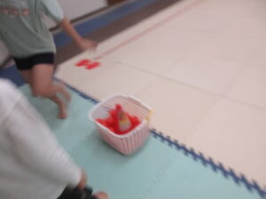 カゴに入れて、お友達にタッチしたら選手交代です✨