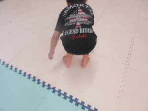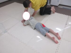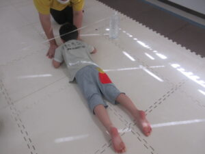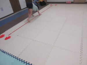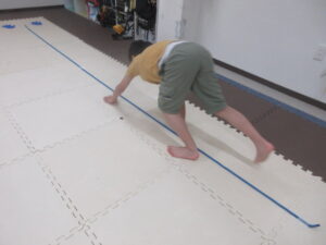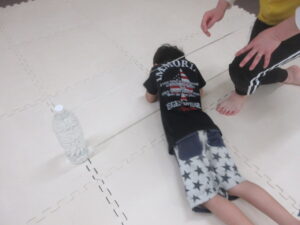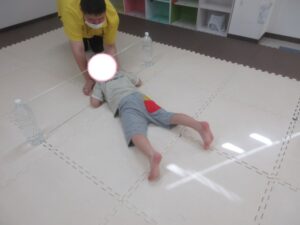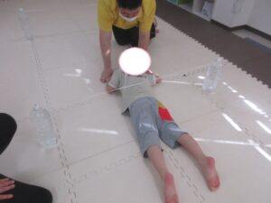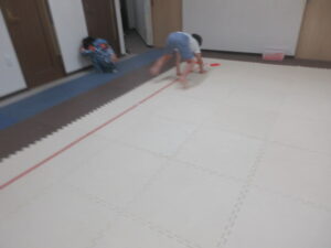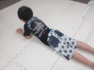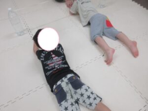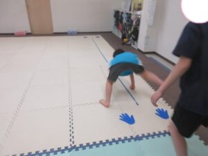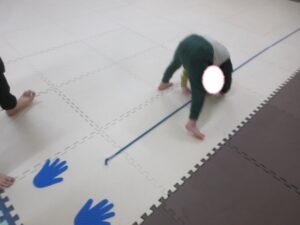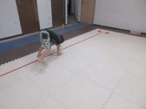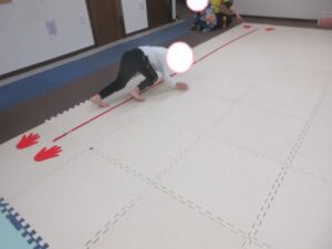 はじめてワニをしたお友達はつま先をしっかりと使って進めていましたよ(⋈◍>◡<◍)。✧♡