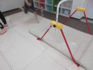 紐は跨いで鉄棒は潜って走り抜けよう✨