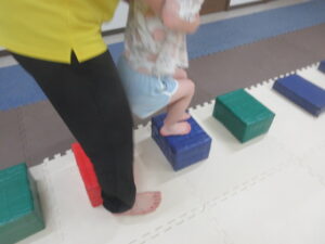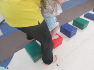 ワニさんでゴム紐の下を進んだら山登りをしよう✨