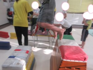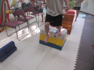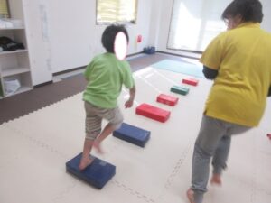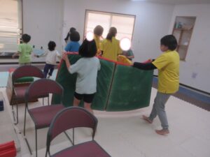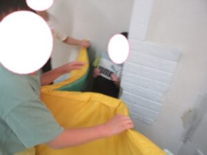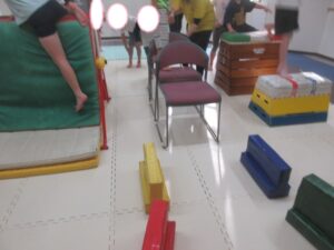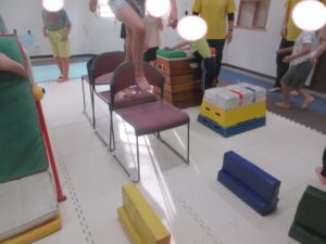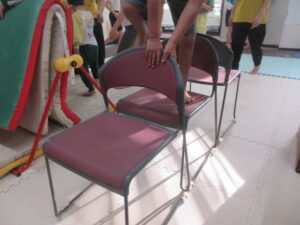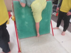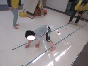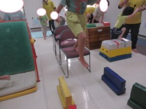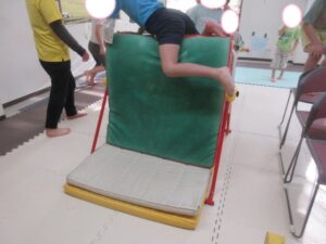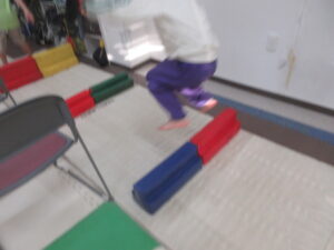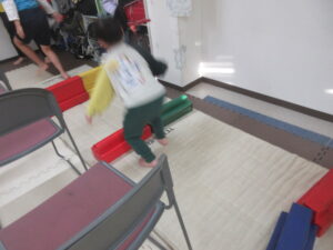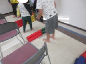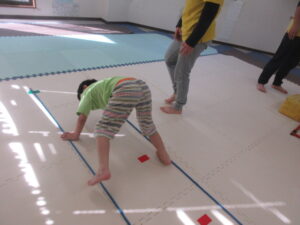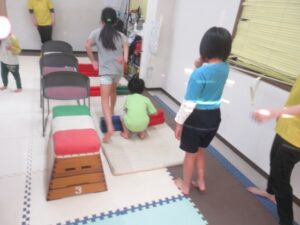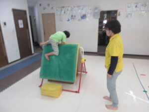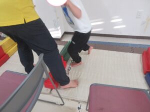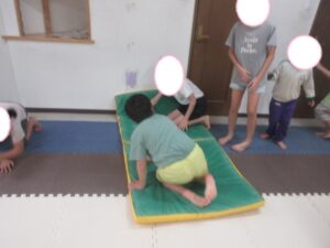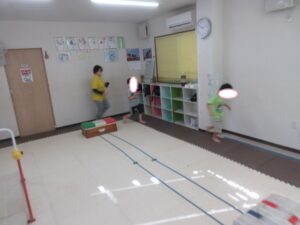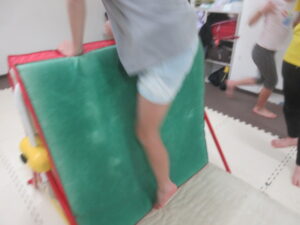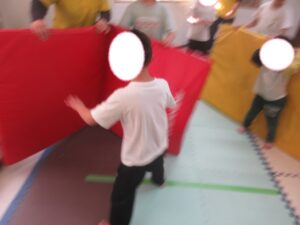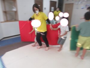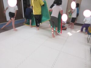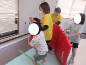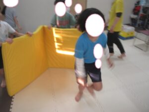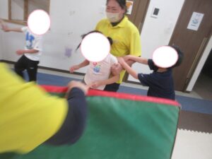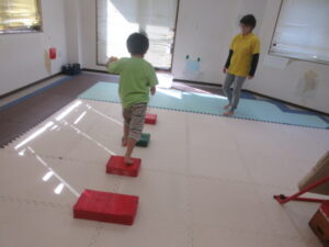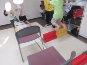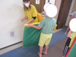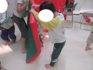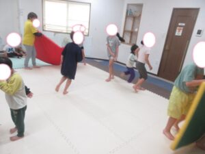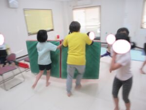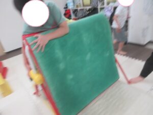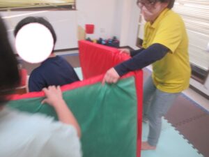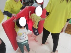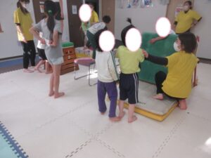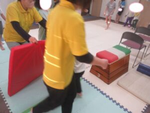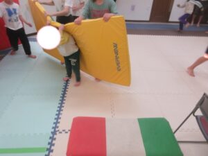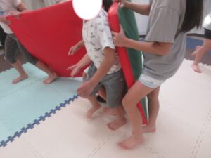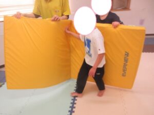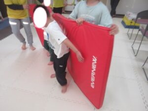 鬼は2人1組でマットを持ってお友達をジャンプゾーンに追い詰めよう✨